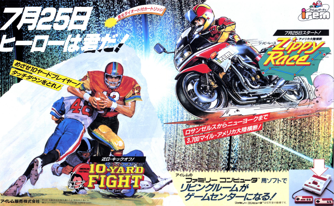1983年にアーケードで登場した『10ヤードファイト』は、日本人にとって馴染みの薄かったアメリカンフットボールを、誰でも遊べる“体感型スポーツゲーム”として見事に落とし込んだ作品だった。ファミコン版は1985年に移植され、開発はアイレム、音楽は高木一郎、プロデューサーに横井軍平、そして総監修に山内溥という錚々たる顔ぶれが名を連ねている。